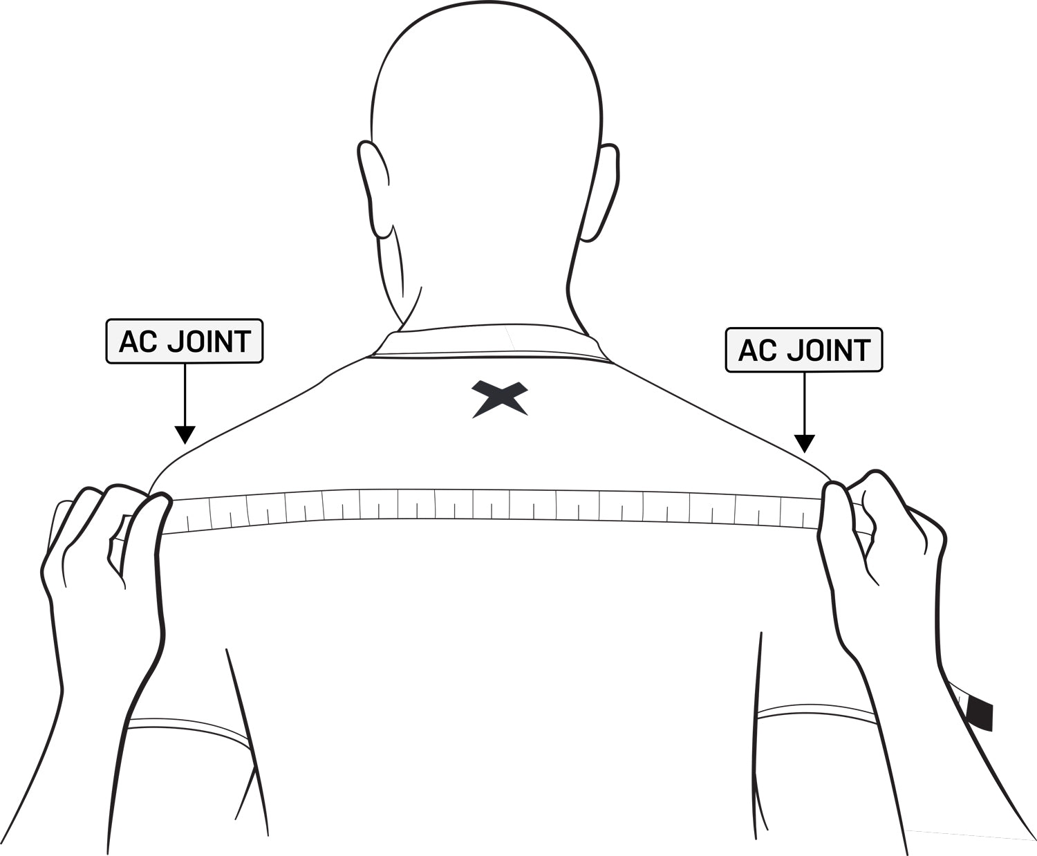 Properly fitted shoulder pads are imperative to an athlete's performance and safety. Please follow the instructions below to be sure your Xenith product is fitted properly. Using a standard, soft measuring tape, measure the width of your player's back from the left shoulder AC joint to the the right shoulder AC joint.